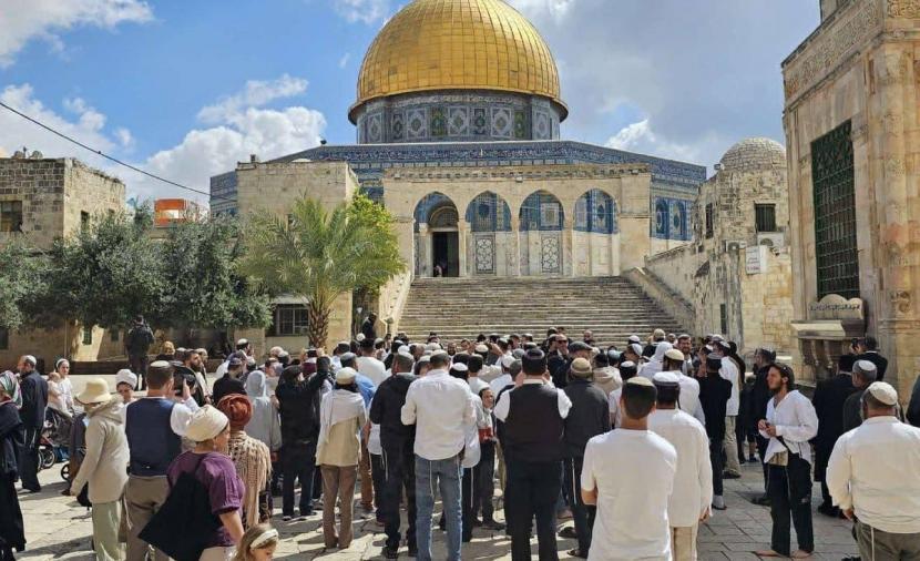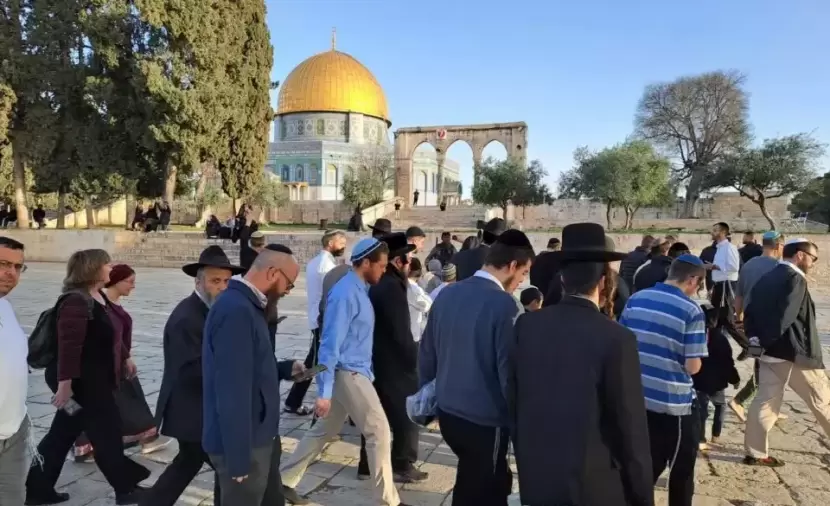 وأفادت محافظة القدس، بأن 150 مستوطنا اقتحموا المسجد الأقصى من جهة باب المغاربة، ونفذوا جولات استفزازية في باحاته.
